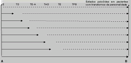 E = Esquizofrenias A = Pólo máximo de tipicidade psicótica TD = Transtornos Delirantes B = Pólo máximo de atipicidade psicótica TE-A = Transtorno Esquizoafetivo TAD = Transtornos Afetivos delirantes TE = Transtorno Esquizofreniforme TPB = Transtorno Psicótico Breve A B= Espectro psicótico intermediário Note-se que depois dos Transtornos Delirantes (TD), inicia-se, a partir dos quadros esquizoafetivos (E - A), um amplo espectro de formas clínicas psicóticas passíveis ao tratamento e controle pelo lítio e outros estabilizadores do humor. Parece que esses quadros consistem em um verdadeiro "espectro das psicoses do lítio", culminando em estados psicóides bastante complexos e atípicos onde, muitas vezes, o controle terapêutico só é efetivo quando associamos lítio, valproato ou neurolépticos em baixas doses com anti-depressivos. Finalizando esta exposição, é bom dizer que o modelo teórico que foi aqui discutido - representado pelo diagrama anterior - apesar de se assemelhar a um continuum, não tem maiores pretensões senão a de se mostrar útil na prática clínica cotidiana, auxiliando o médico a diagnosticar corretamente e instituir o tratamento adequado para os seus pacientes. Creio que nunca serão excessivas as contribuições que possam auxiliar o exercício diagnóstico nessa atividade clínica que, sem dúvida, se constitui como aquela mais complexa e difícil dentre todas as especialidades da medicina, ou seja, a prática da Psiquiatria.