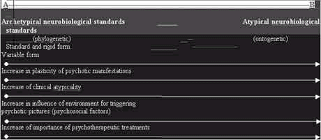 CLINICAL DISCUSSION AND THEORETICAL CONSIDERATIONS W.'s first acute crisis was clinically manageable, however, it could not be considered as perfectly fit in a typical manic phase. On the other hand, a clear depressive tone mingled with her hyperkinetic puerile behaviour was visible and a closer examination of her anomalous experience revealed, besides a clear tachypsyche, feelings of a melancholic nature, such as apprehension, dismay and fear. Her second acute crisis, exactly a year later, was clearly depressive in character, but, similar to the first one, did not fit into the diagnostic criteria to be regarded as a typical depressive phase. It can be said that her acute symptoms consisted of modes of anomalous experiences composed by depressive and manic elements occurring simultaneously and a frustrated and disappointing character (18) , hence implying its atypical and uncharacteristic aspect. That was confirmed by her favourable therapeutic response to an incisive neuroleptic and, subsequently, to its association with an antidepressant. W.'s temporal clinical development happened favourably and benignly. Nevertheless, some psychopathological aspects of her clinical picture need to be better explained. I believe that can be done more clearly after discussing V.'s case and the theoretical considerations which follow. V. showed a tendency to introversion, seeking refuge inside herself, in her imagination, daydream and fantasies as well as had been revealing a clear liability to solitary behaviour since childhood. According to her, she had been an excessively shy, withdrawn and frightened child. She could remember that, in her childhood, she hardly took part in any games and amusements children of the same age did. In addition, she was too scared of everything and subjected to frequent crises of night terror and crises of nervousness. She said that she had been an extremely sensitive and impressionable girl and most of the time would prefer to play on her own, steeped in an universe richly inhabited by weird beings and imaginary fellows. In early puberty, she began suffering intense depressive crises and that is when she started undergoing psychiatric treatments, which she would need for the rest of her life. Besides this clear personality vulnerability, she would, in contrast, have a rich intellectual life and highly refined cultural interests. Since early age, she was keenly interested in the Arts, showing a special gift for drawing, as well as a singular curiosity for Humanities and Philosophy which matched very well with her contemplative and aesthetic temperament. As expected, she had a dense inner life, naturally guided towards reflection, but at the same time, disturbed by several conflicts, doubts, lack of confidence and hesitations. Her social life had always been troublesome and difficult, from her adaptation in work groups at school to love and personal relationships. She did not trust anyone, and was withdrawn and extremely susceptible to the slightest signs of disapproval or rejection. On the other hand, she was tender and altruistic, valued and kept her appointments and responsibilities seriously and correctly and was rather worried about her family's problems. Her professional life was at risk due to frequent disagreements with her colleagues in the various jobs she had had. Moreover, since a serious nervous breakdown she suffered while living abroad for a post-graduation course, she had limited herself to making plans and projects which have never been carried out. However, when her crises aroused, she would become extremely choleric, explosive and irritable, withdrawing from everybody and displaying an apparently motiveless feeling of hatred. Lately, she had been experiencing long periods of feelings and states of mind marked by apathy and impassivity and, at times, a cold and apathetic indifference. On other occasions, when an acute crisis approached, she experienced a tendency to irritability, annoyance and nervousness along with strong and mobilising emotions associated with vivid images of her childhood and adolescence. It seems likely, after describing those two clinical cases, that both correspond to atypical psychotic cases in patients with personality disorder. Those atypical pictures, which in our opinion would be defined better if they were called psychoid states (18), seem to consist of diverse psychopathological expressions corresponding to frustrated and abortive symptoms of typical and well-defined psychotic pictures. The terms typical and atypical would in turn refer to the concept we intend to frame, that is, maximum psychotic typicality and atypicality. By maximum psychotic typicality, we mean that level of psychopathological expression in which, in a lateral section of the phenomenological report, all typical schizophrenic symptoms are included, whether predominantly positive or negative (26). In a longitudinal section, its usual and known, unfavourable clinical development which inevitably leads to a psychic deterioration condition or processual defect (8,7), after successive appearance of psychotic episodes. In short, the highest degree of psychotic typicality includes, besides the morphologically typical and unmistakable psychopathological aspects of schizophrenic episodes or outbreaks in its acute and productive phase, the progressive and fatal damage of the patient's affective-symbolic dimension (22) during the clinical development of the disease. Thus, in the maximum psychotic typicality pole, there are those anomalous experiences so well described and classified by classic authors, such as "echo", "stealing" and "broadcasting" of thoughts, phenomena of influence and audible hallucinations by means of dialoguing "voices", among others (6,17,5). However, those specific psychopathological symptoms should belong to the maximum pole of psychotic typicality only if they coexist with an unfavourable clinical history typical of schizophrenia. It can be n